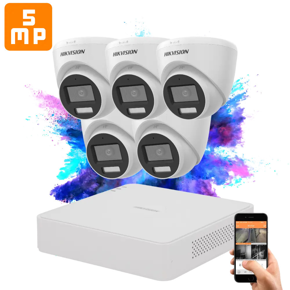 Hikvision TurboHD-TVI 5 kamerás dome kamerarendszer 5MP színes éjszakai képpel